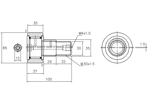 | 30 | CFE 30 | CFE 30 R | CFE 30 UU | CFE 30 UUR | 2,030 | 12 | 80 | M30 X 1.5 | 35 | 37 | 100 | M6 X 1.0 | 32 | 35 | 29 | 1.5 | 41 | 32.5 | 1.5 | 2 | 40 | 4,640 | 8,980 | 5,000 |
