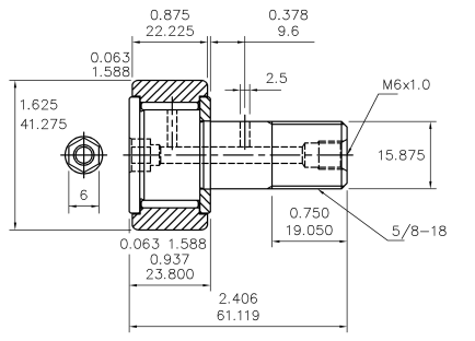| 15.875 (5/8) | CR 24V | CR 24VR | CR 24VUU | CR 24VUUR | 225 | 6 | 1 1/2 | 38.100 | 5/8 - 18 | 7/8 | 22.225 | 29/32 | 23.800 |